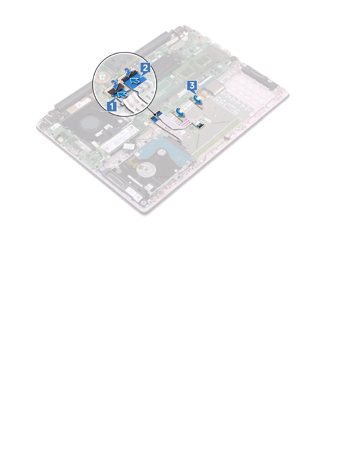 8 Ax the adhesive tape to secure the speaker cable to the touchpad bracket [3].