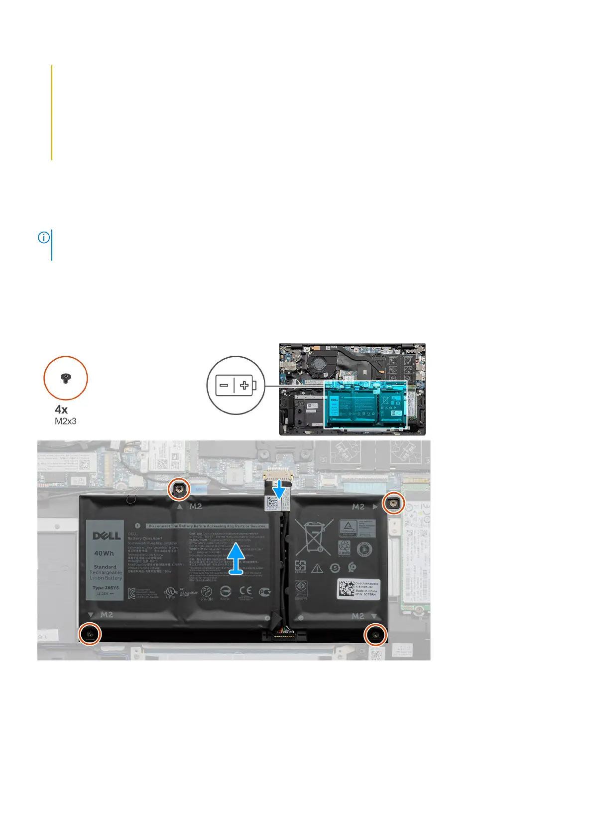 2. Remove the four screws (M2x3) that secure the battery to the palm-rest and keyboard assembly.