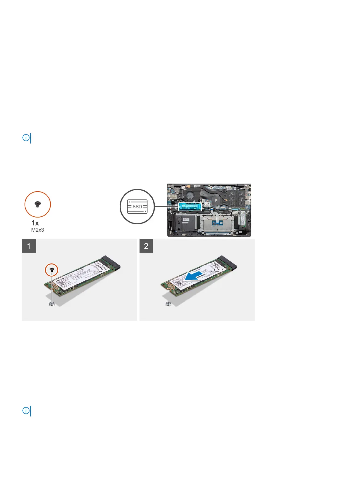 1. Remove the single screw (M2x3) that secures the solid-state drive to the palm-rest and keyboard assembly.