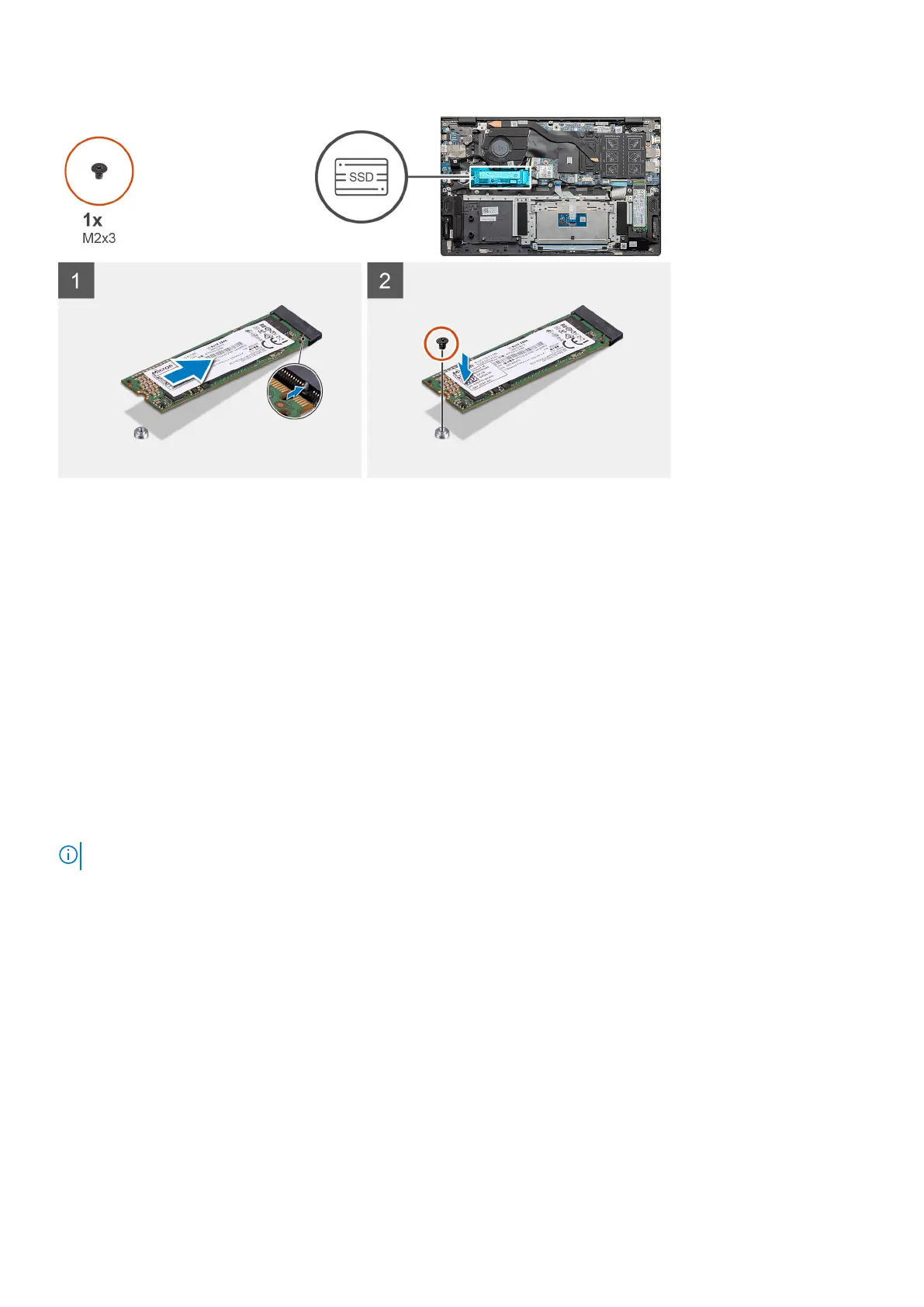 2. Replace the single (M2x3) screw to secure the solid-state drive module to the palm-rest and keyboard assembly.