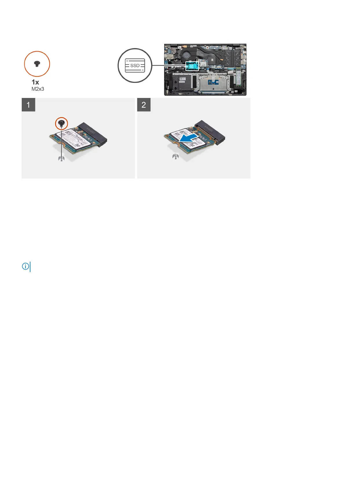 1. Remove the single screw (M2x3) that secures the solid-state drive to the palm-rest and keyboard assembly.