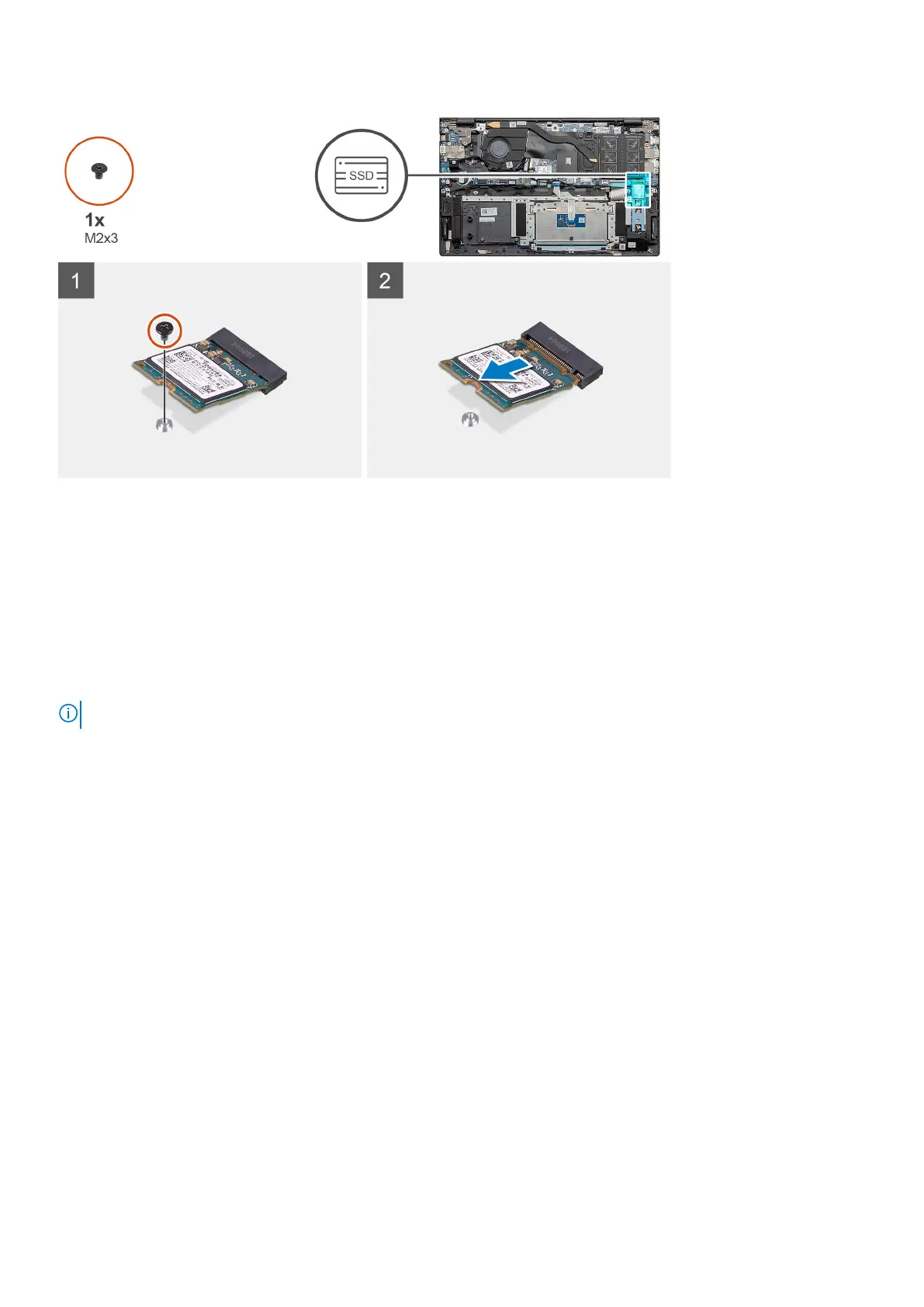1. Remove the single screw (M2x3) that secures the solid-state drive to the palm-rest and keyboard assembly.