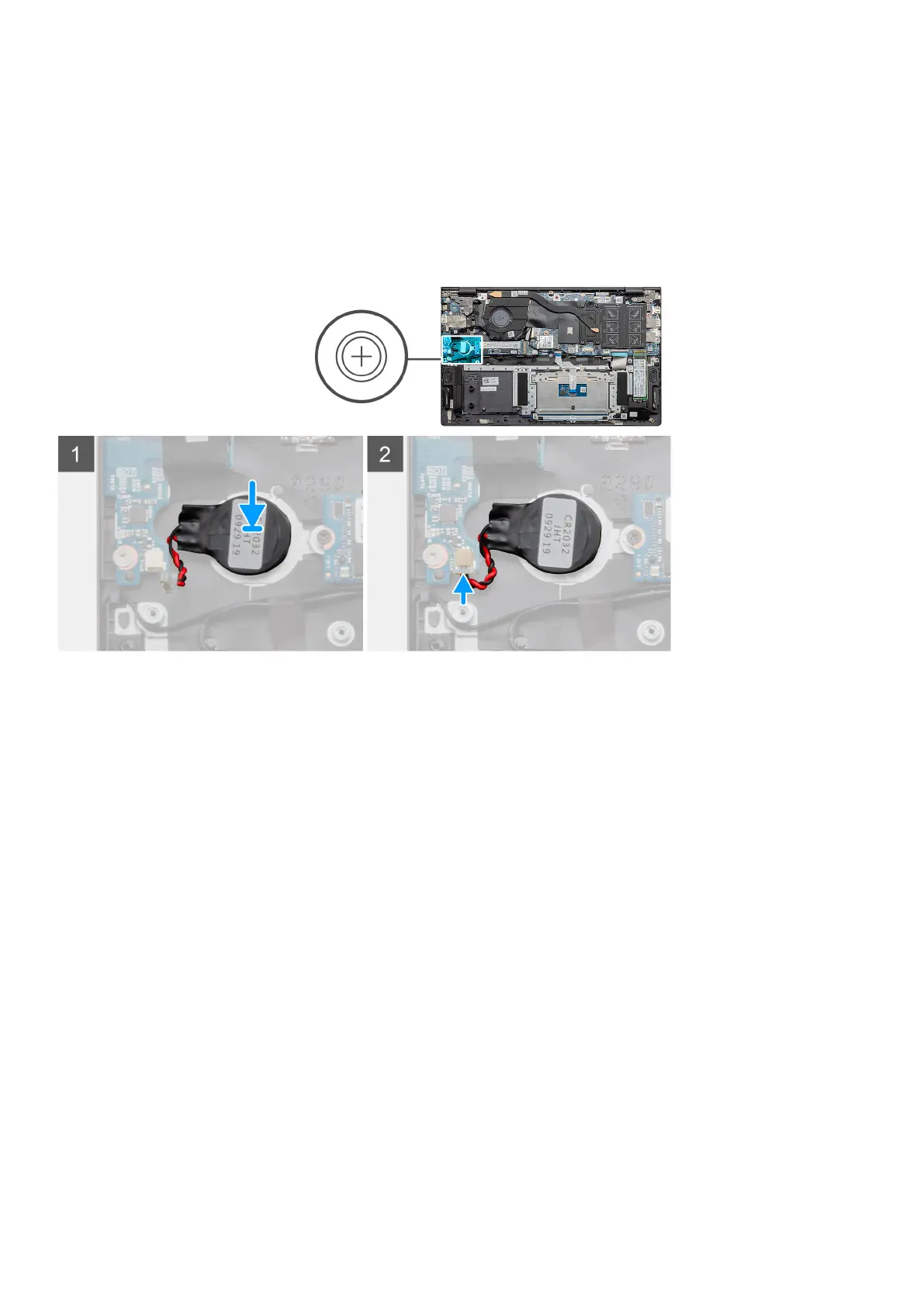 1. Adhere the coin-cell battery to the slot on the palm-rest and keyboard assembly.