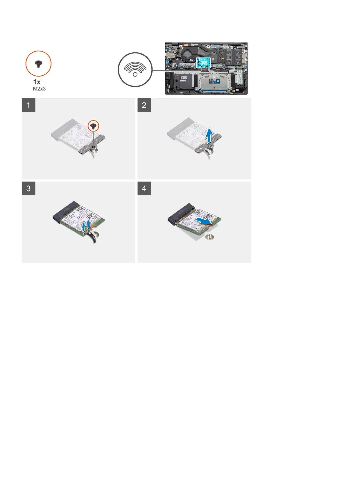 1. Remove the screw (M2x3) that secures the WLAN card bracket to the WLAN card.
