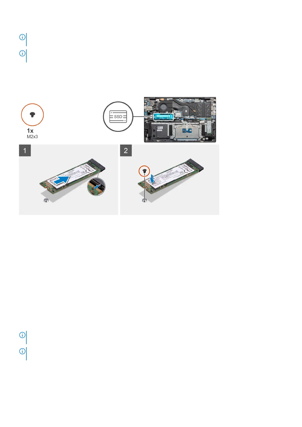 2. Replace the single (M2x3) screw to secure the solid-state drive module to the palm-rest and keyboard assembly.