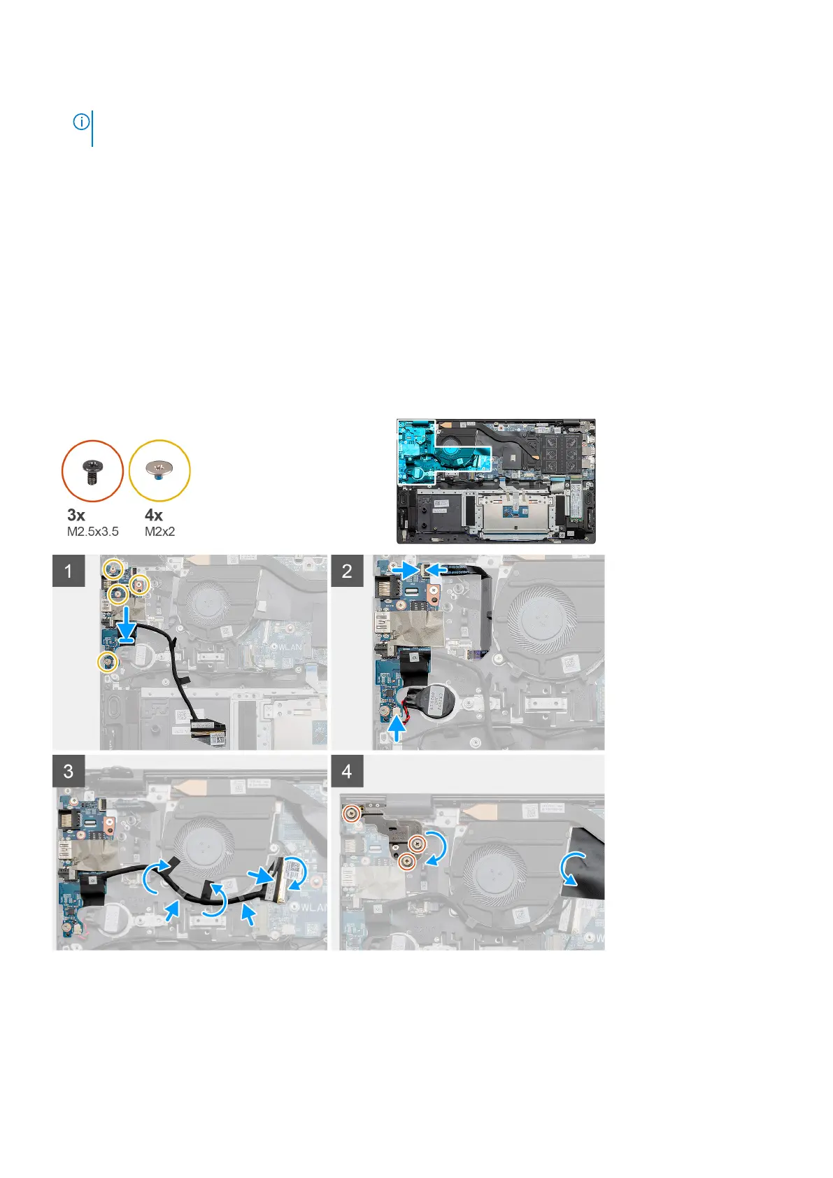 3. Replace the four screws (M2x2) that secure the I/O board to the palm-rest and keyboard assembly.