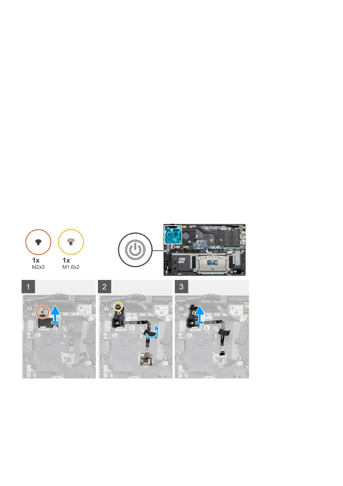 2. Remove the single screw (M1.6x2) that secures the power button with optional fingerprint reader to the palm-rest and