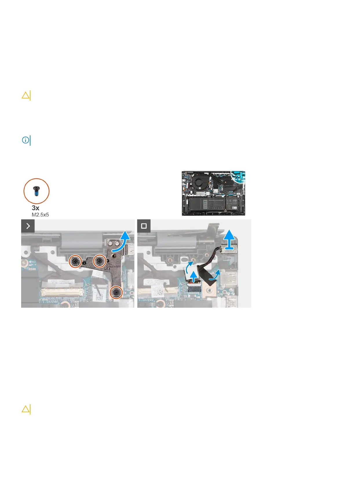 1. Remove the three screws (M2.5x5) that secure the right display hinge to the system board.