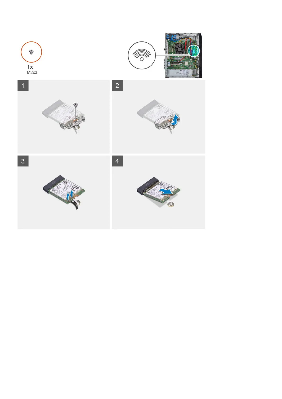 2. Remove the single (M2x3) screw that secures the wireless card to the system board.