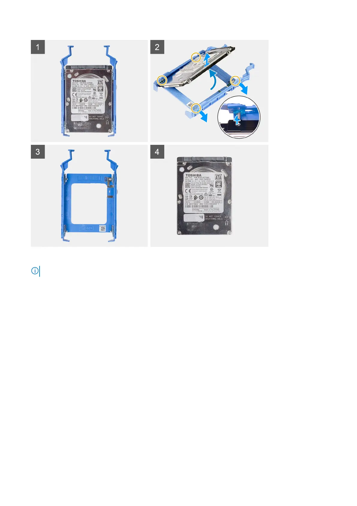 The following images indicate the location of the 2.5-inch hard drive and provide a visual representation of the installation procedure.