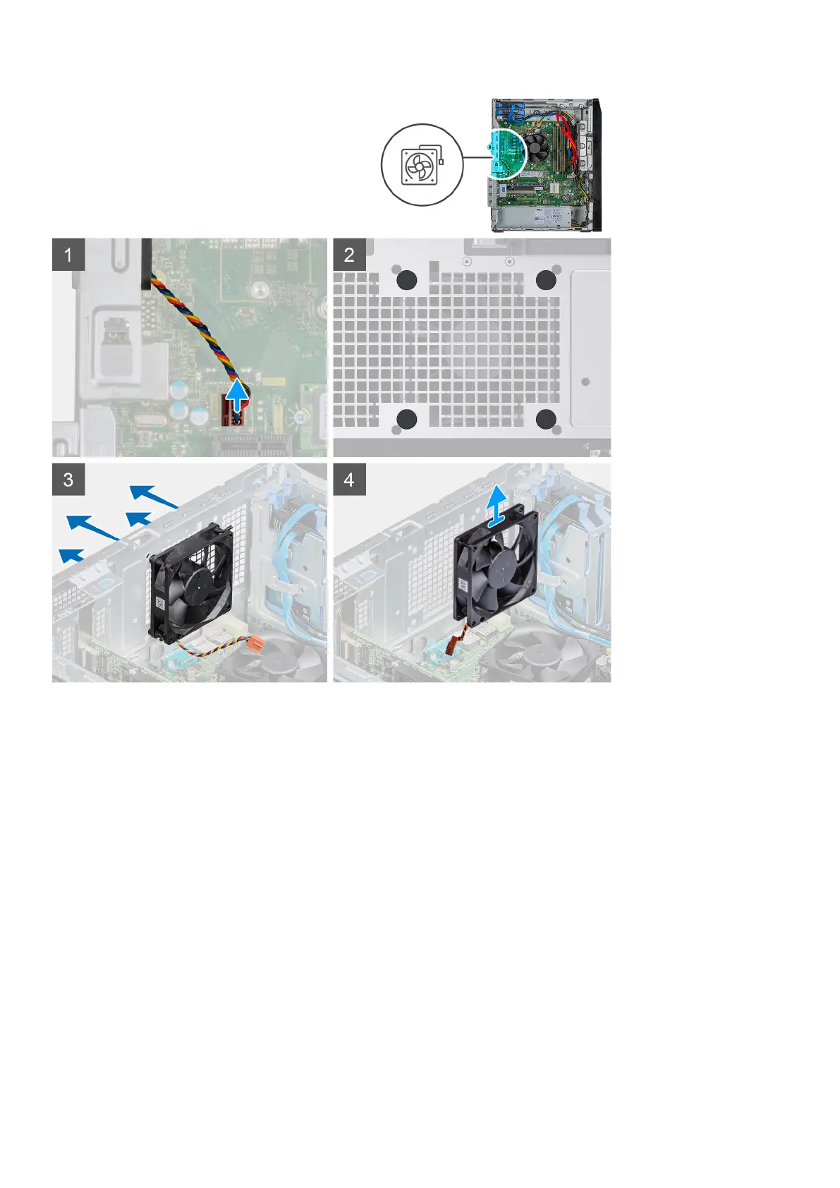 The following images indicate the location of the chassis fan and provide a visual representation of the installation procedure.