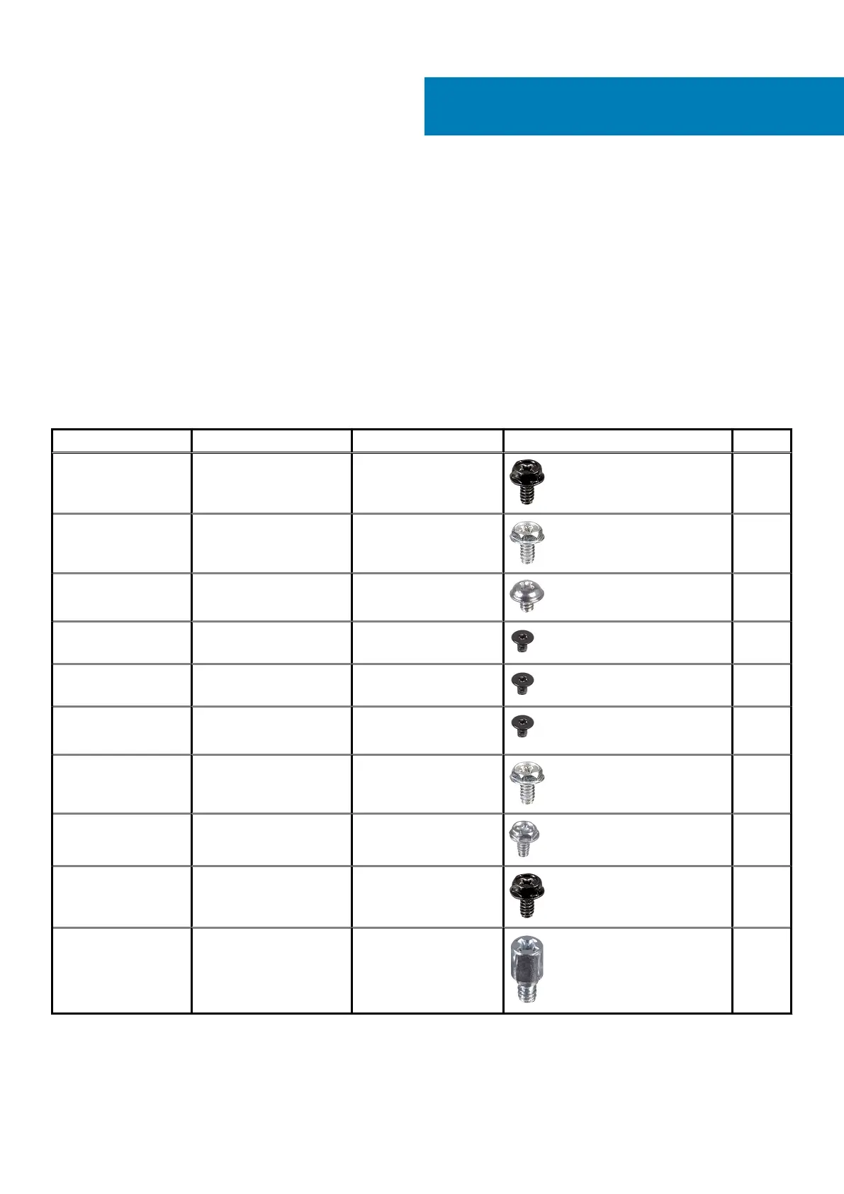 Component Screw type Quantity Image Color