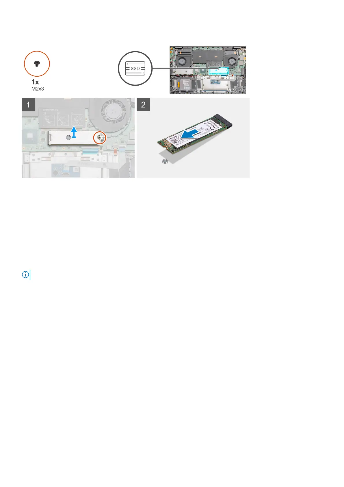 1. Remove the single screw (M2x3) that secures the solid-state drive module shield to the palm-rest and keyboard assembly.