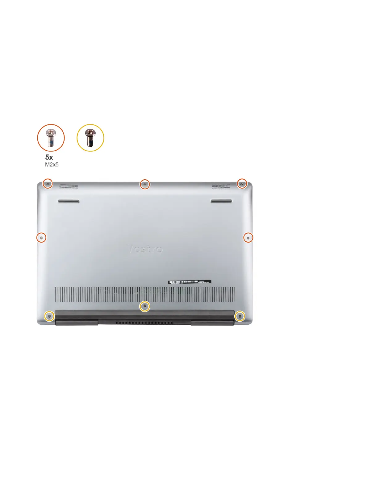 3 Replace the ve screws (M2x5) that secure the base cover to the palm-rest and keyboard assembly.