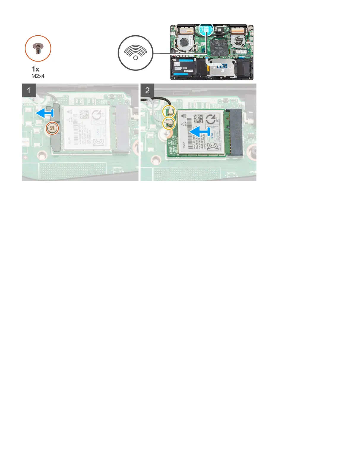 The gure indicates the location of the WLAN card and provides a visual representation of the installation procedure.