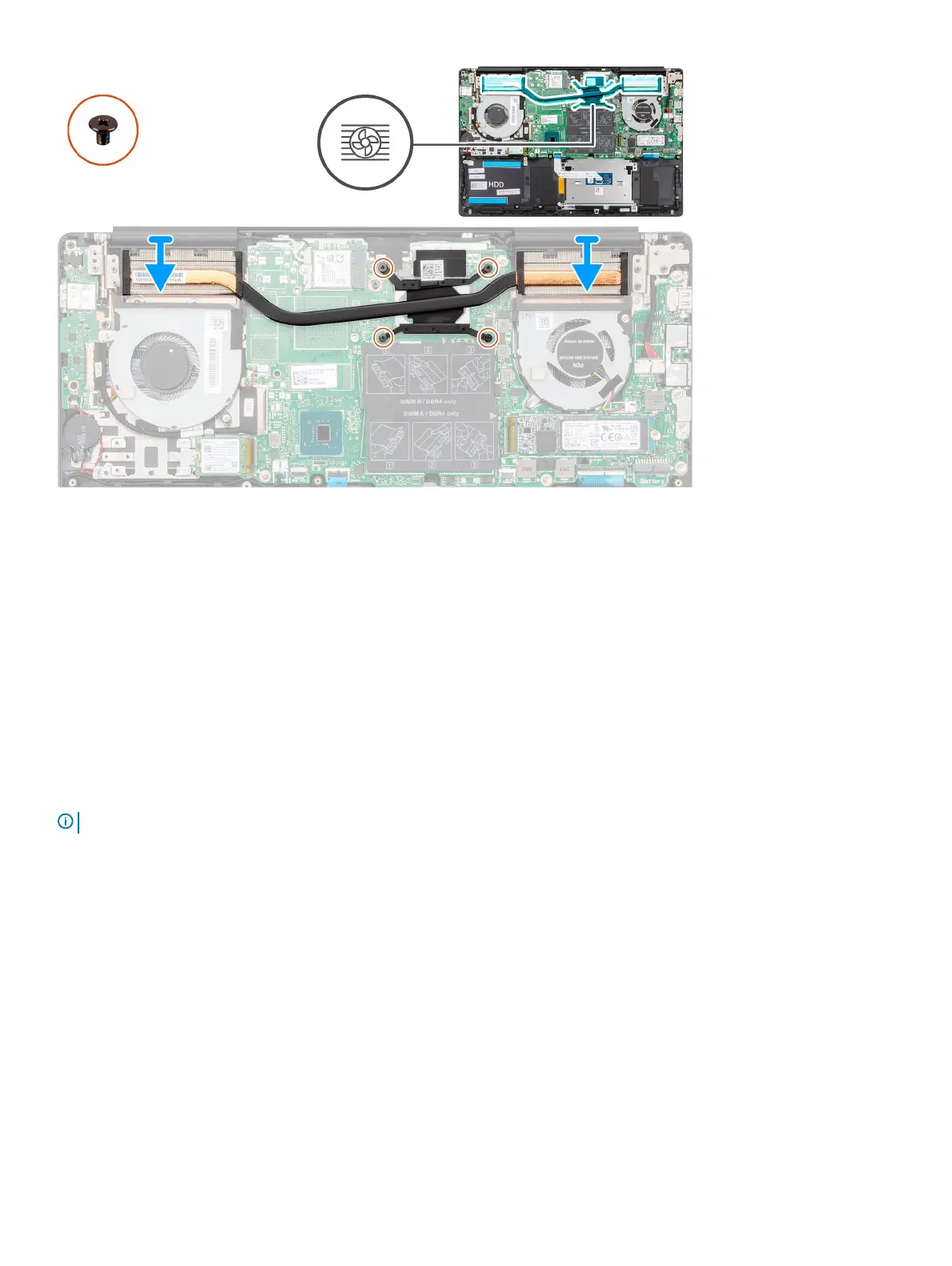1 Place the heat sink on the system board and align the screw holes on the heat sink with the screw holes on the system board.