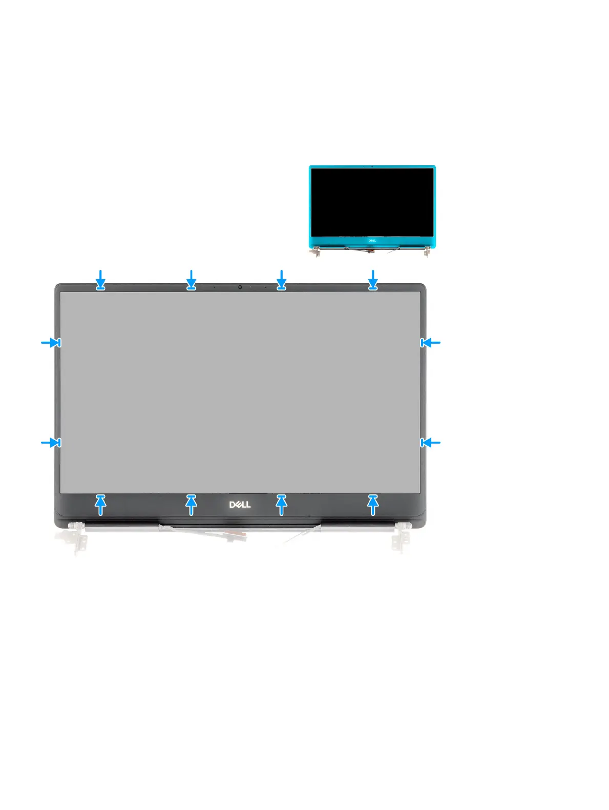 The gure indicates the location of the display bezel and provides a visual representation of the installation procedure.