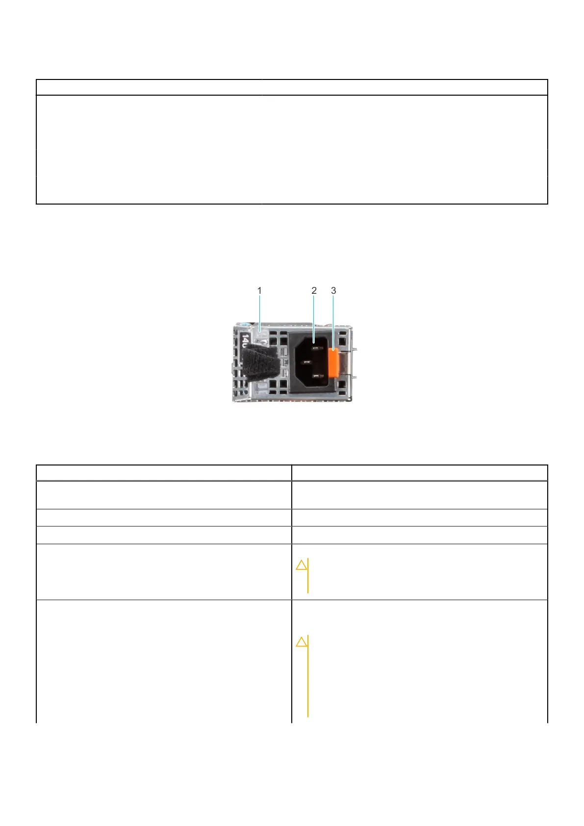 AC power supply units (PSUs) have an illuminated translucent handle that serves as an indicator. The indicator shows if power is