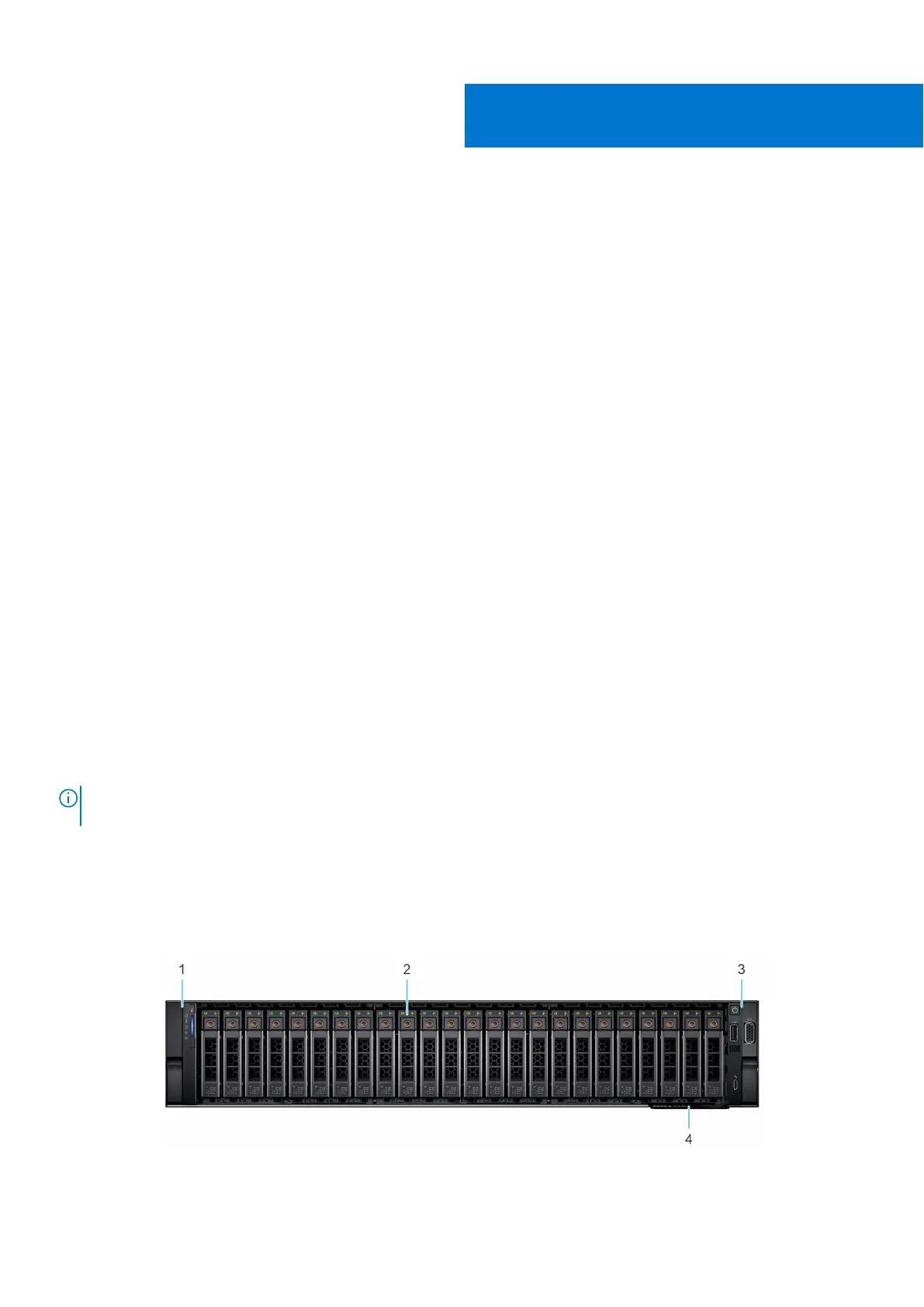 The following figure shows the front view of the VxRail P670F, P670N, and V670F 24 x 2.5-inch drive system: