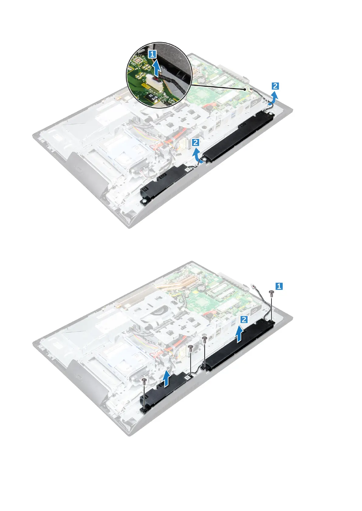 b. Lift the speaker module and remove it from the chassis [2].