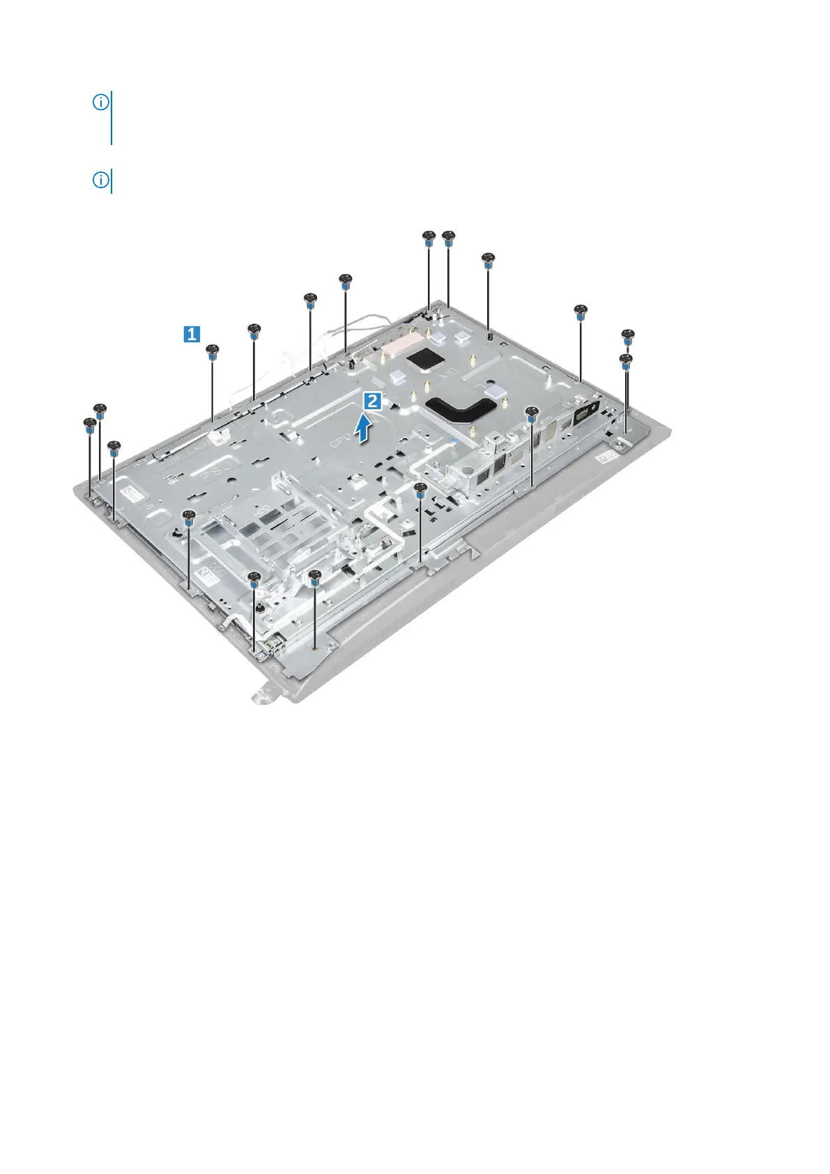 b. Remove the cables from the chassis frame and lift the chassis frame away from the computer. [2].