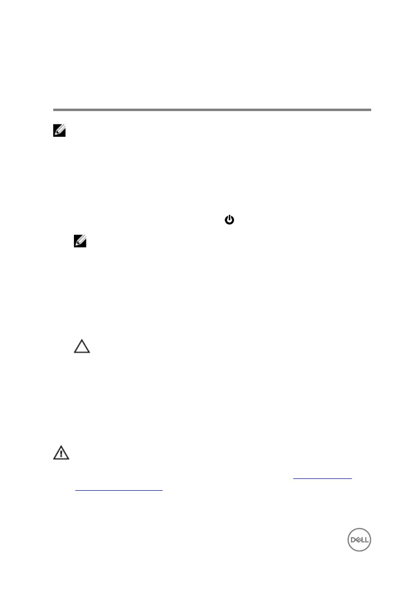 6 After the computer is unplugged, press and hold the power button for 5 seconds