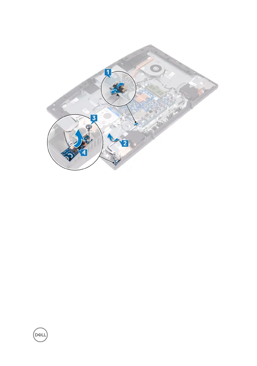 4 Lift the power-button board, along with its cable, o the display assembly base.