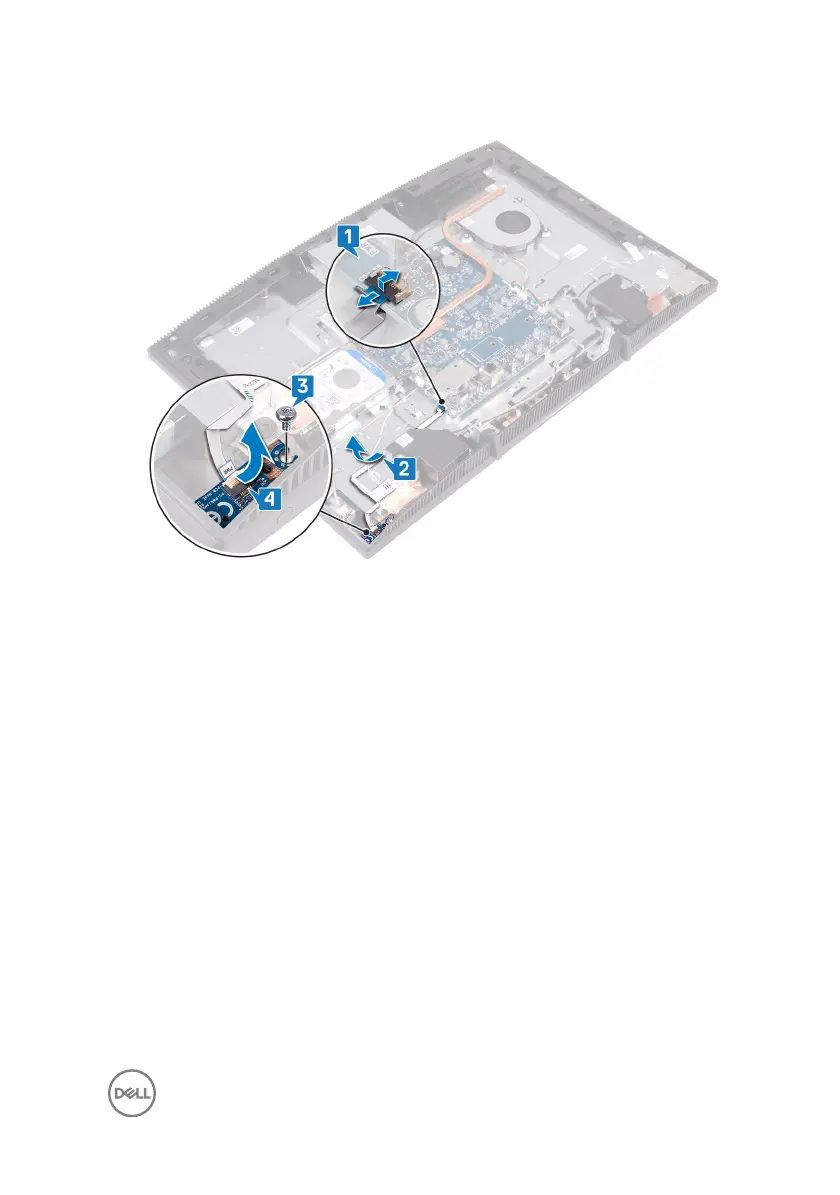 4 Lift the power-button board, along with its cable, o the display assembly base.