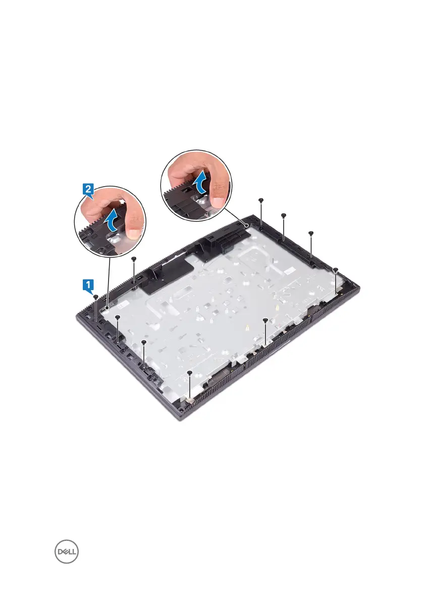 1 Remove the 13 screws (M3x5 black) that secure the middle frame to the display-
