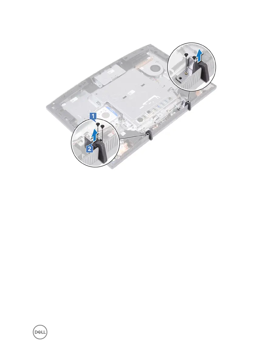 2 Lift the rubber feet o the display-assembly base.