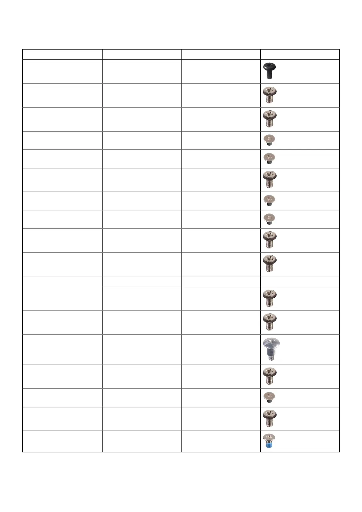 Component Screw type Quantity Screw image