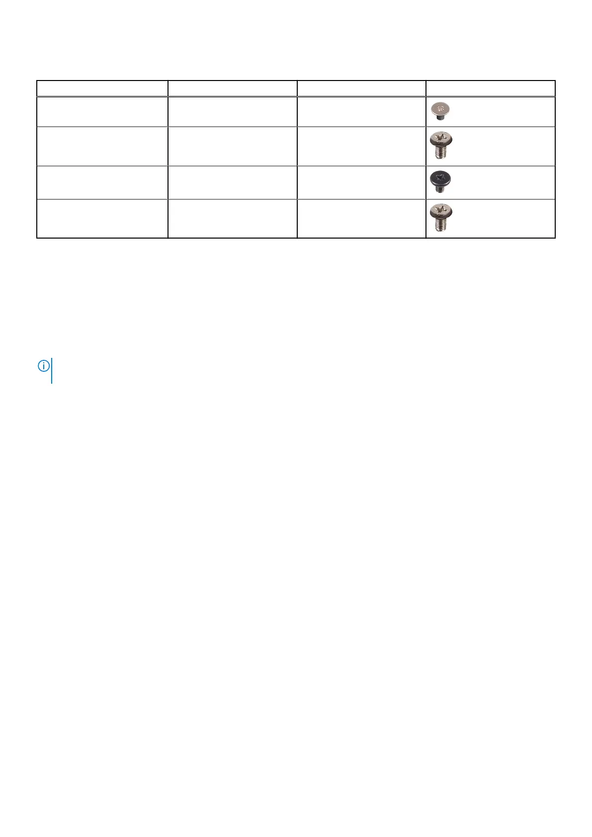 Table 1. OptiPlex 3280 All-in-One screw list (continued)