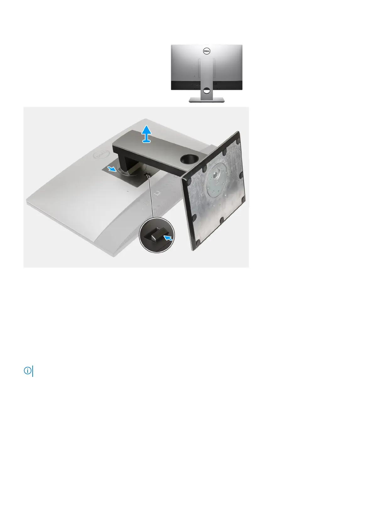 2. Hold the button in the release position, and lift the stand upward.