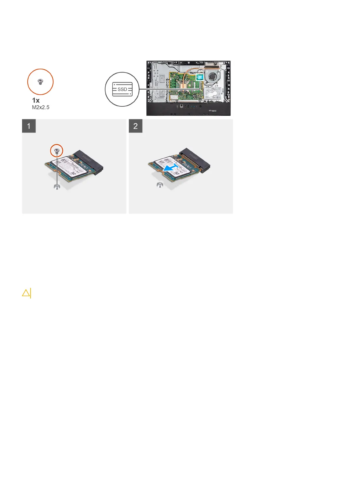 1. Remove the screw (M2x2.5) that secures the solid-state drive to the system board.