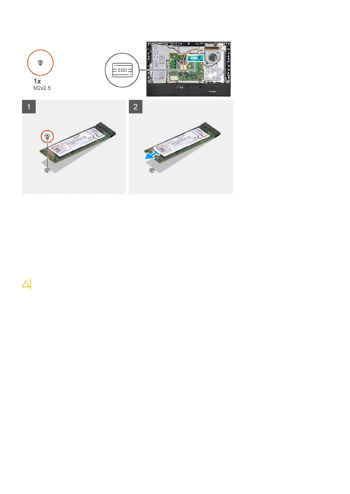 1. Remove the screw (M2x2.5) that secures the solid-state drive to the system board.