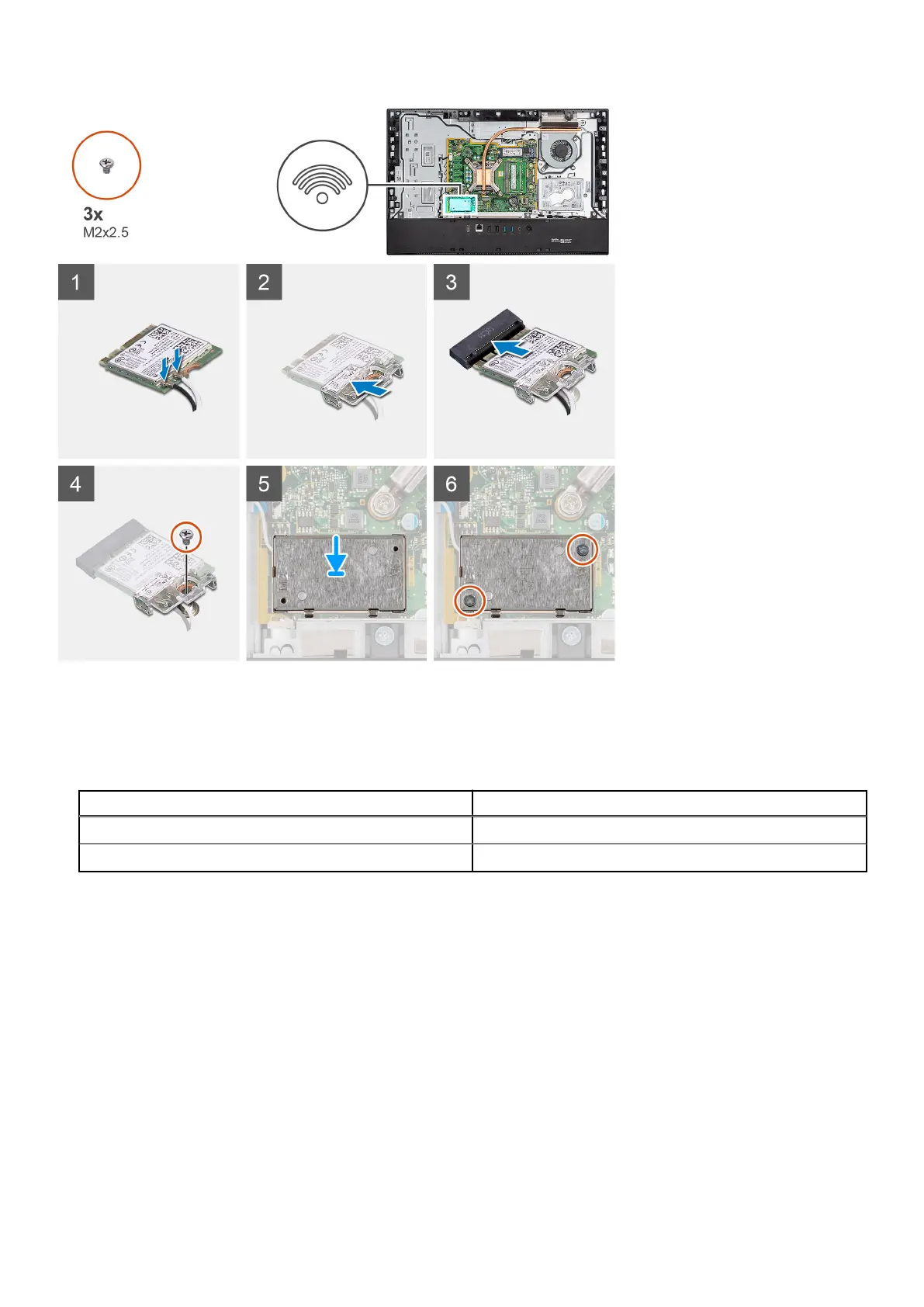 8. Replace the two screws (M2x4) to secure the wireless-card shield to the system board.