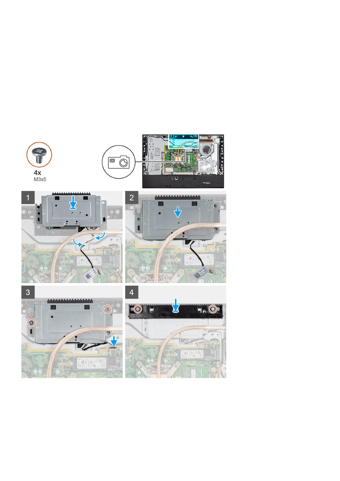 2. Replace the two screws (M3x5) to secure the camera assembly to the middle frame.