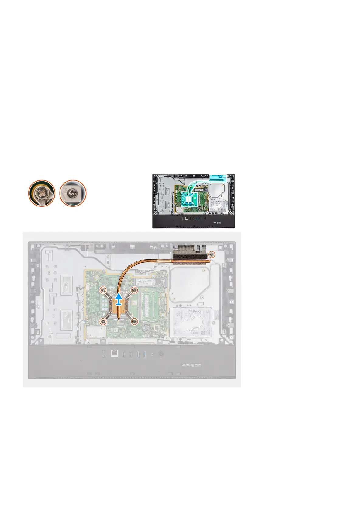 The following image indicates the location of the heat sink and provides a visual representation of the removal procedure.