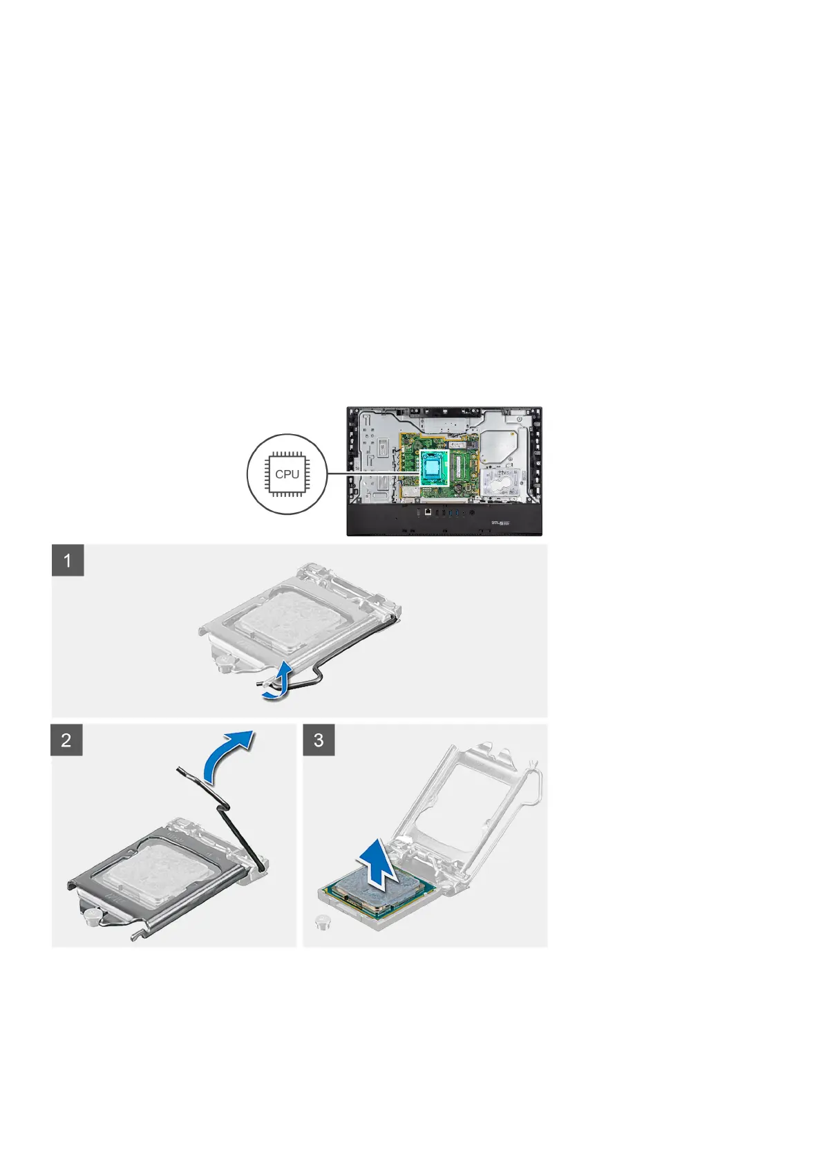 The following image indicates the location of the processor and provides a visual representation of the removal procedure.
