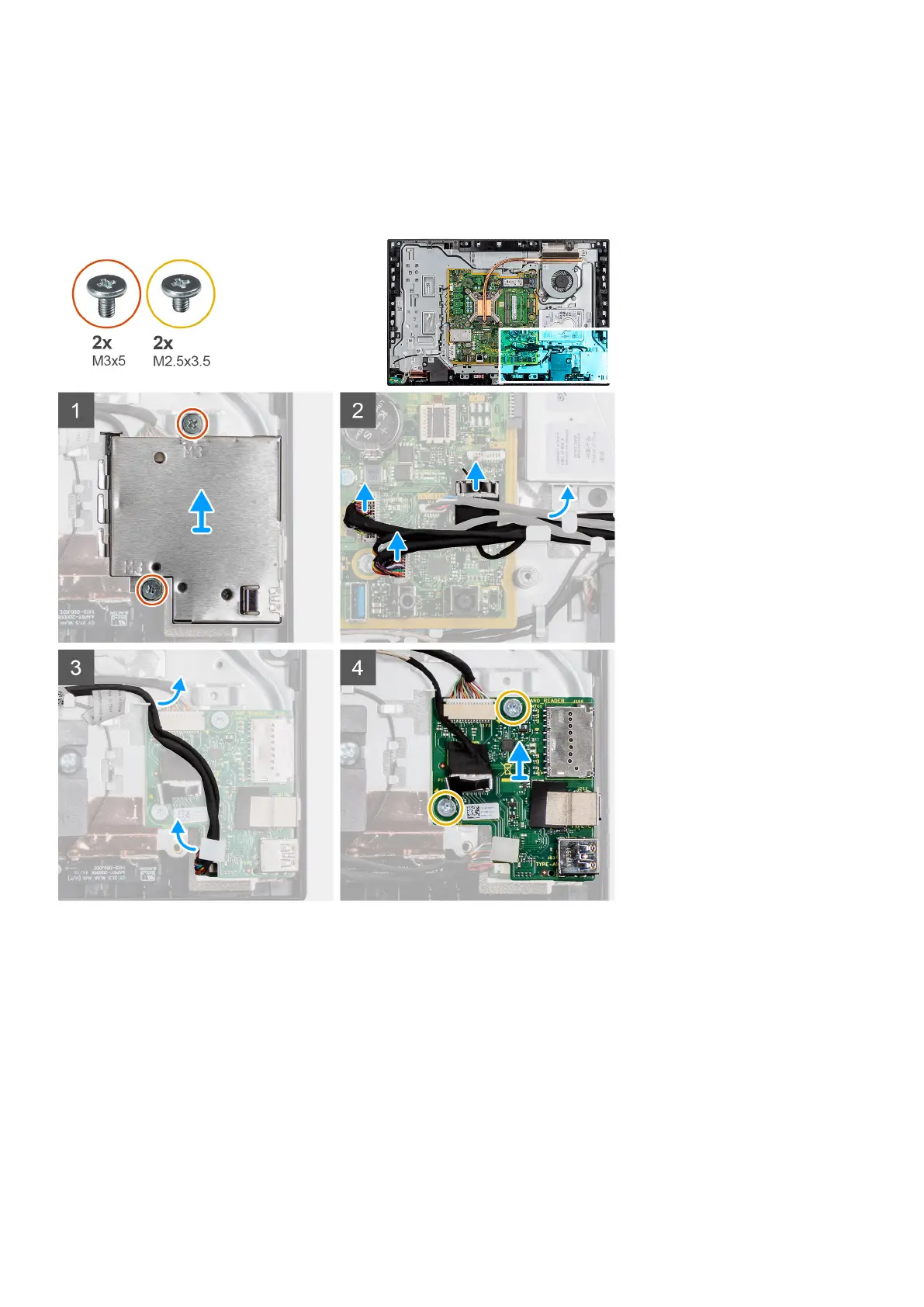 5. Remove the two screws (M2.5x3.5) that secure the side-I/O board to the display-assembly base.