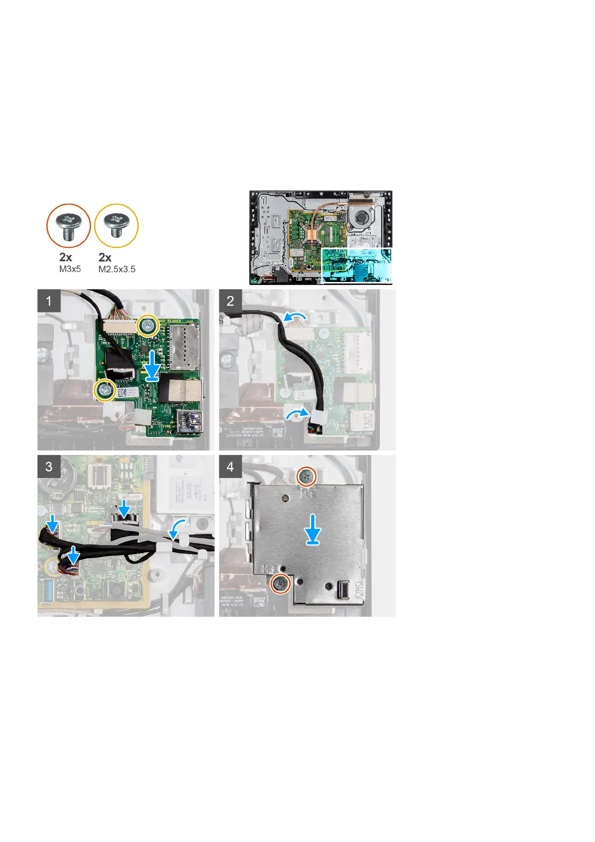 6. Replace the two screws (M3x5) to secure the side I/O-board shield to the display-assembly base.