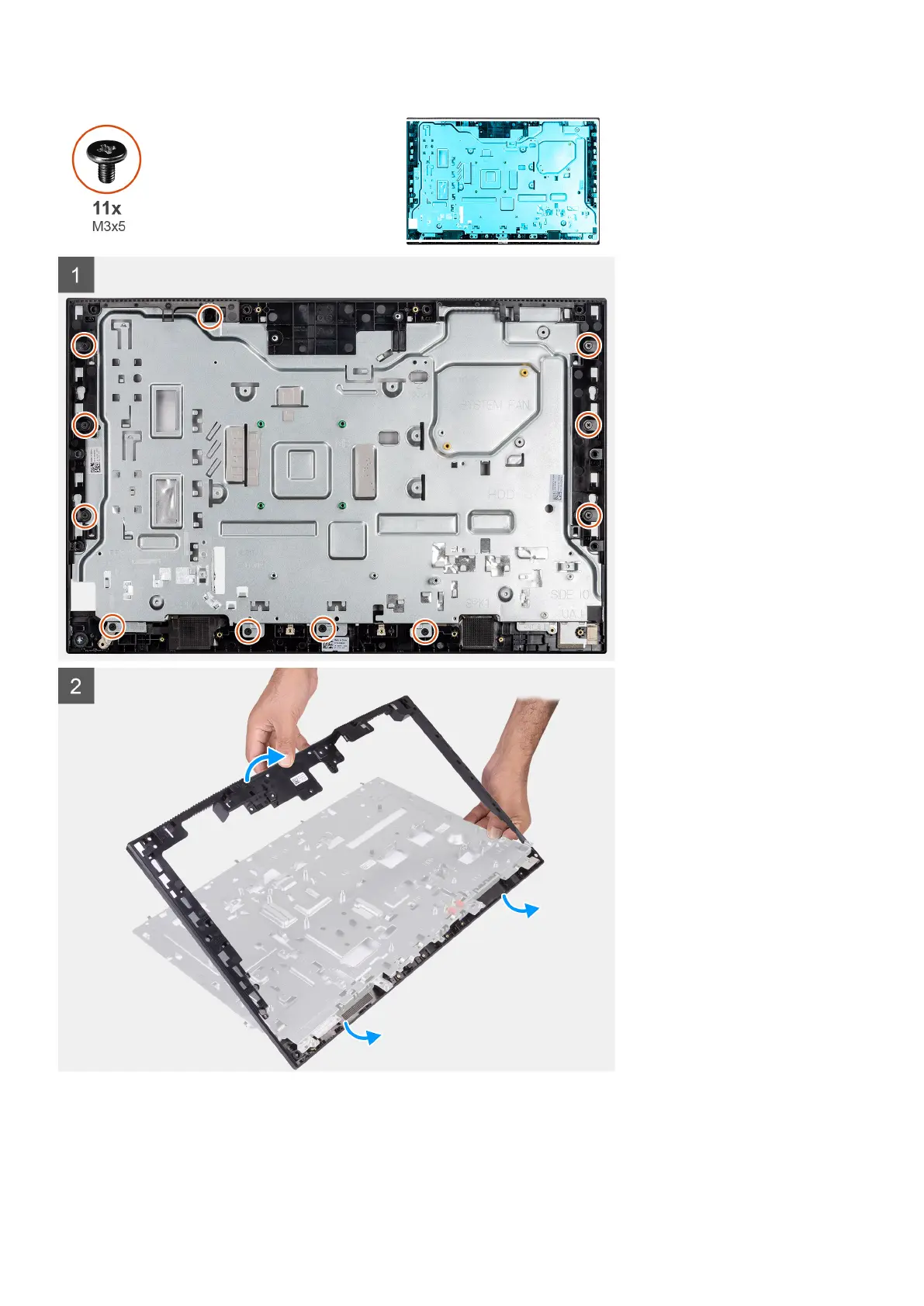 1. Remove the 11 screws (M3x5) that secure the middle frame to the display-assembly base.