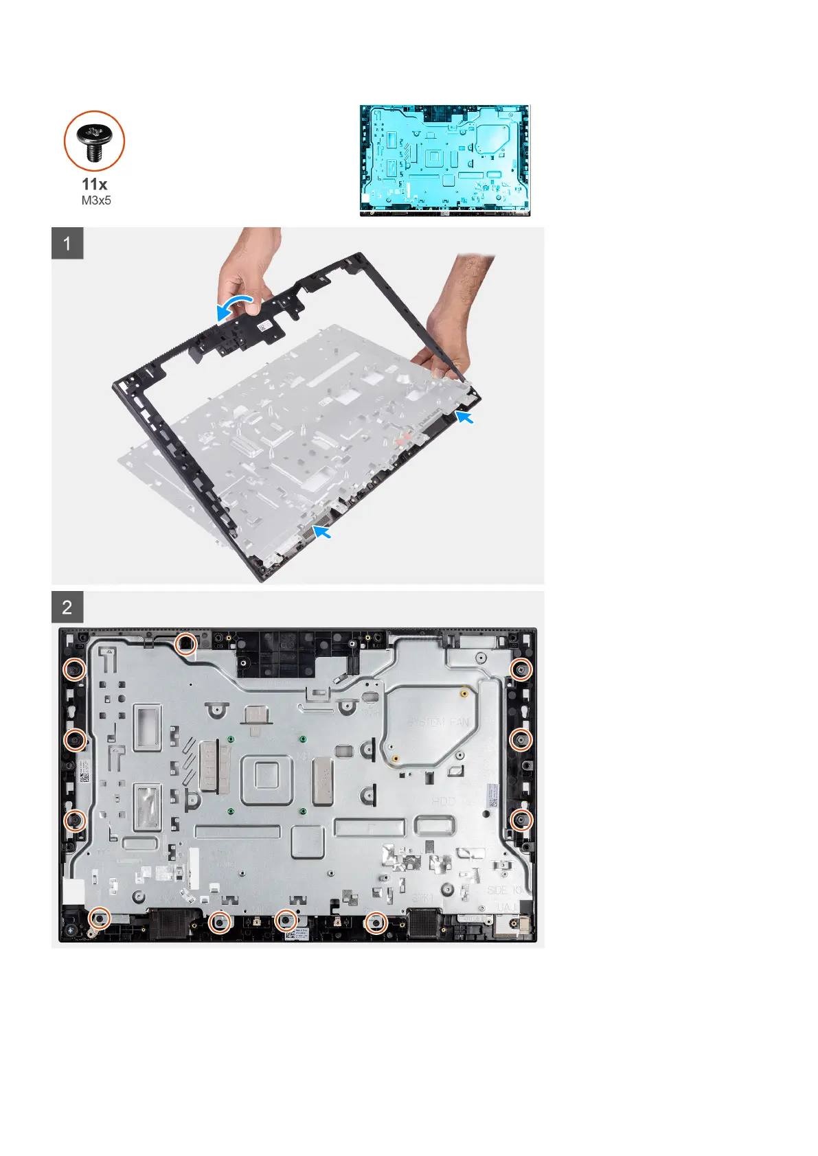 2. Replace the 11 screws (M3x5) to secure the middle frame to the display-assembly base.
