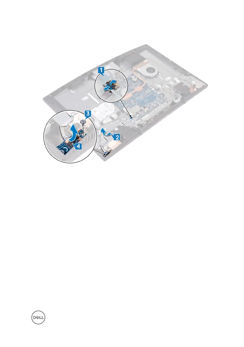 4 Lift the power-button board, along with its cable, o the display-assembly base.