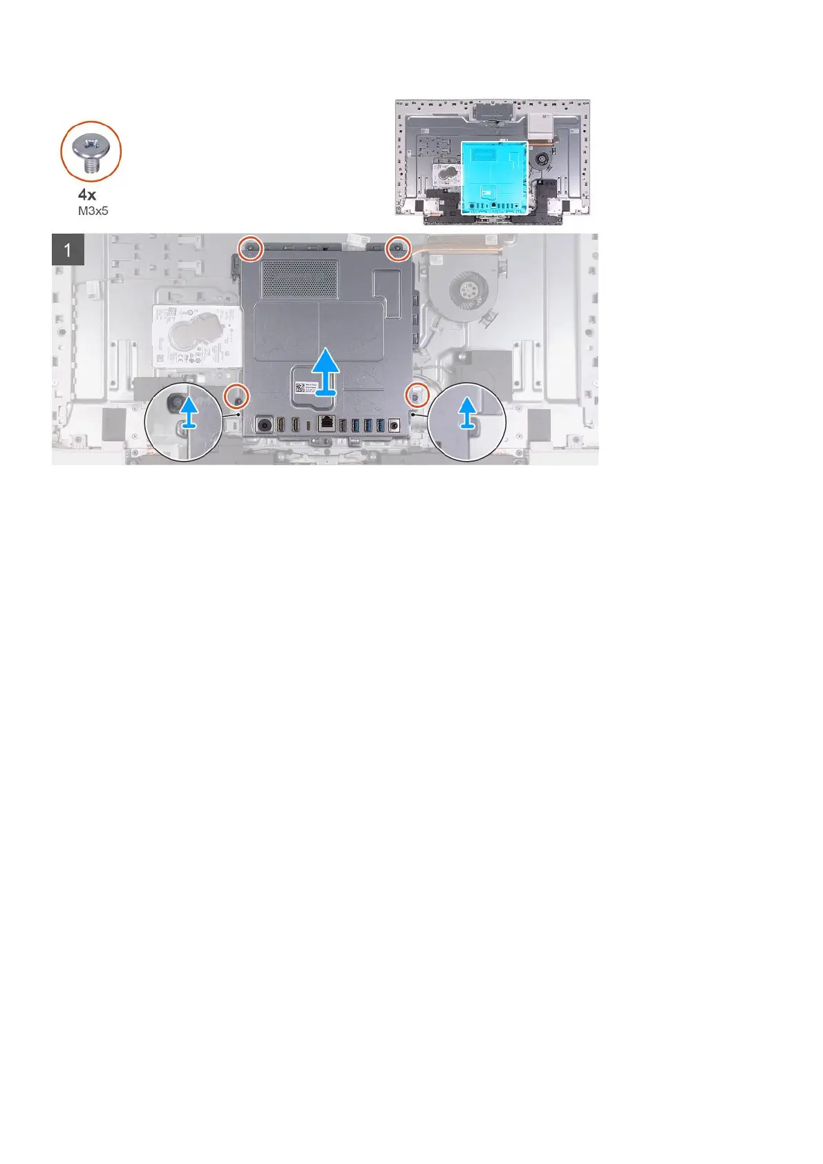 1. Remove the four screws (M3x5) that secure the system-board shield to the display-assembly base.