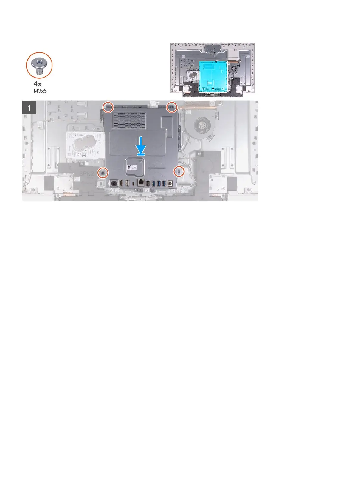 2. Replace the four screws (M3x5) that secure the system-board shield to the display-assembly base.