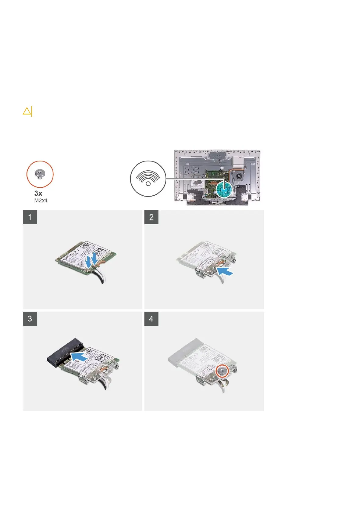The following image indicates the location of the wireless card and provides a visual representation of the installation procedure.