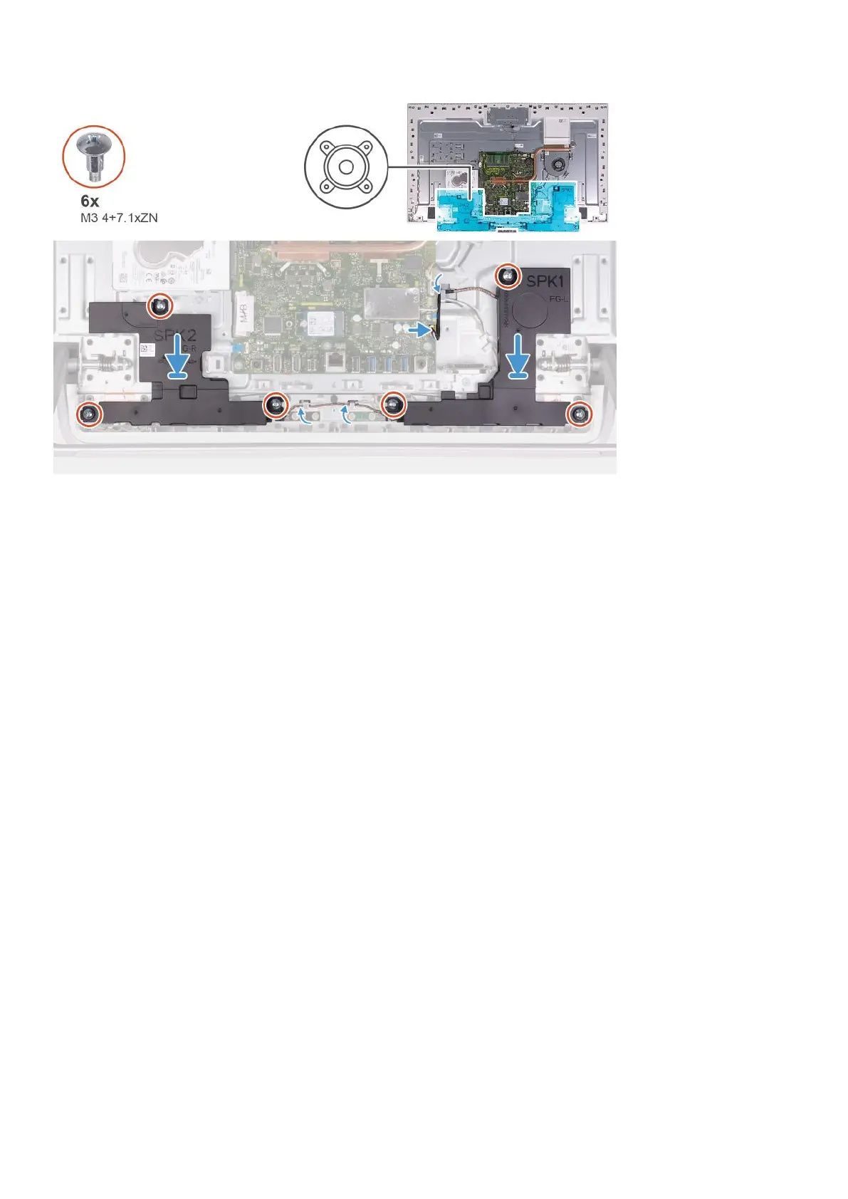 2. Replace the eight screws (M3 4+7.1xZN) that secure the speakers to the display-assembly base.