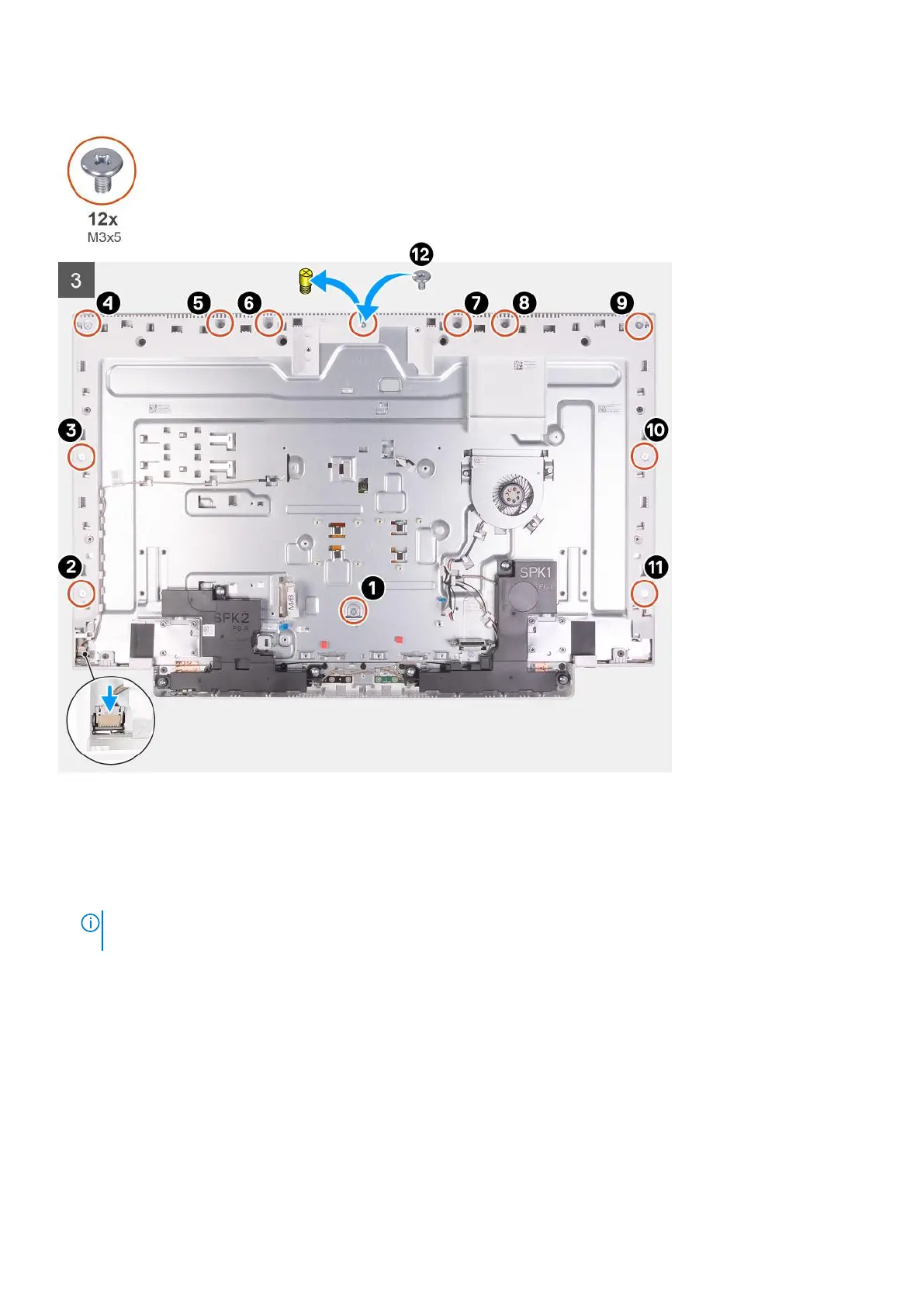 4. Replace the 11 screws (M3x5) that secure the display panel to the display-assembly base.