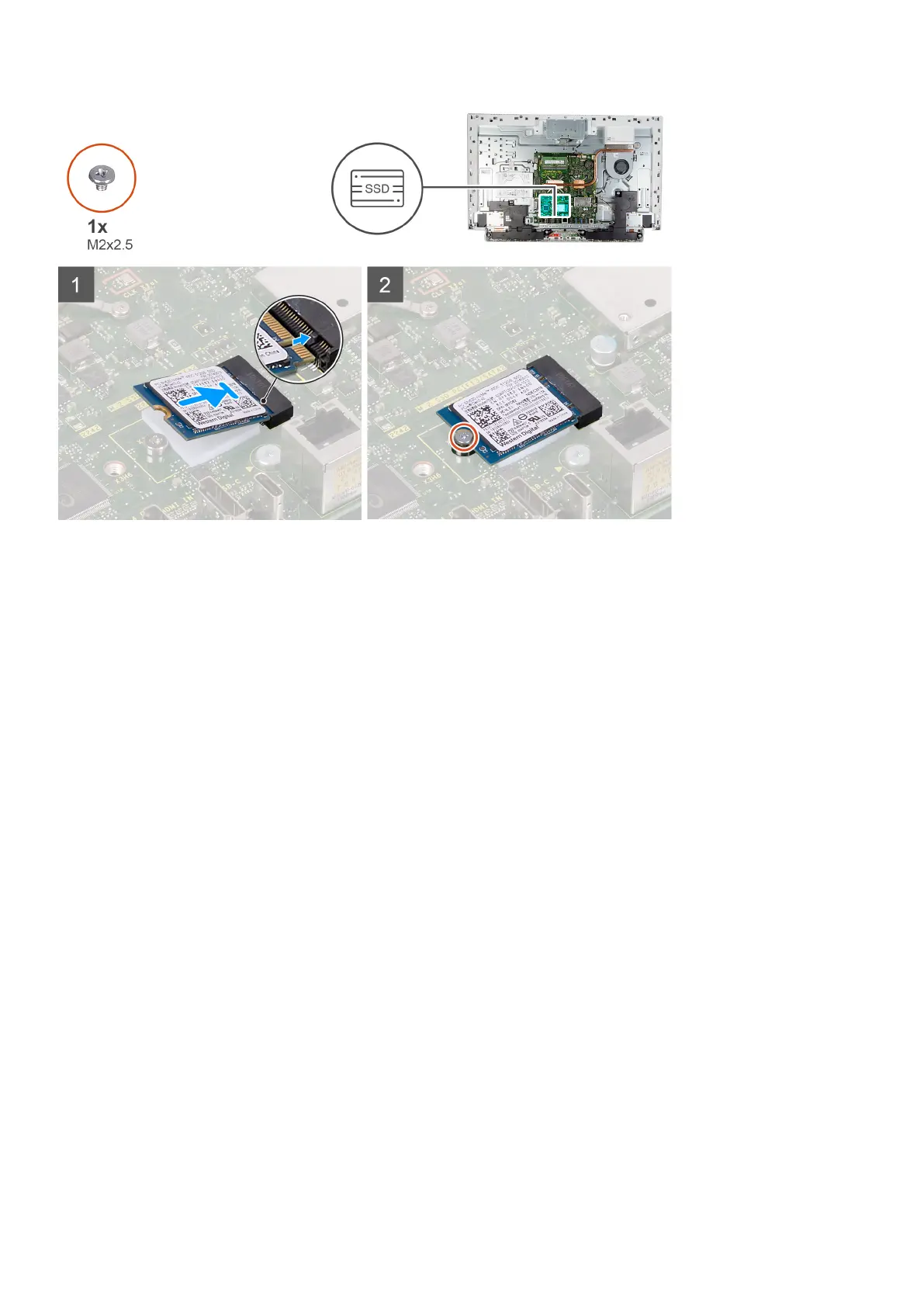 3. Replace the screw (M2x2.5) that secures the solid-state drive to the system board.